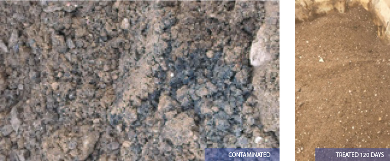 • Treatment Plan utilized On-Site Acclimatization of BP Bacteria, then the formula sprayed on the soil surface that was contaminated to a depth of 1.2m…applied twice, and then kept moist